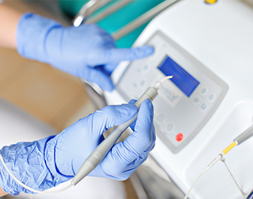 口腔内の軟組織の切開、止血、凝固および蒸散を行うことが可能なレーザー機器を備えております。レーザー機器が可能となる処置や手術については、制限があります。
