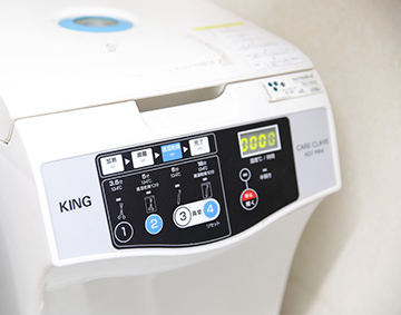 口腔内で使用する医療機器に対して、患者さまごとの交換や、専用機器を用いた洗浄・滅菌処理などを行い、感染症対策を徹底しています。また、ユニットごとに空気清浄機を設置しています。さらに、歯牙の切削や義歯の調整、歯の被せ物の調整時などに飛散する細かな物質を吸収できるよう、歯科用吸引装置(口腔外バキューム)などを設置しています。