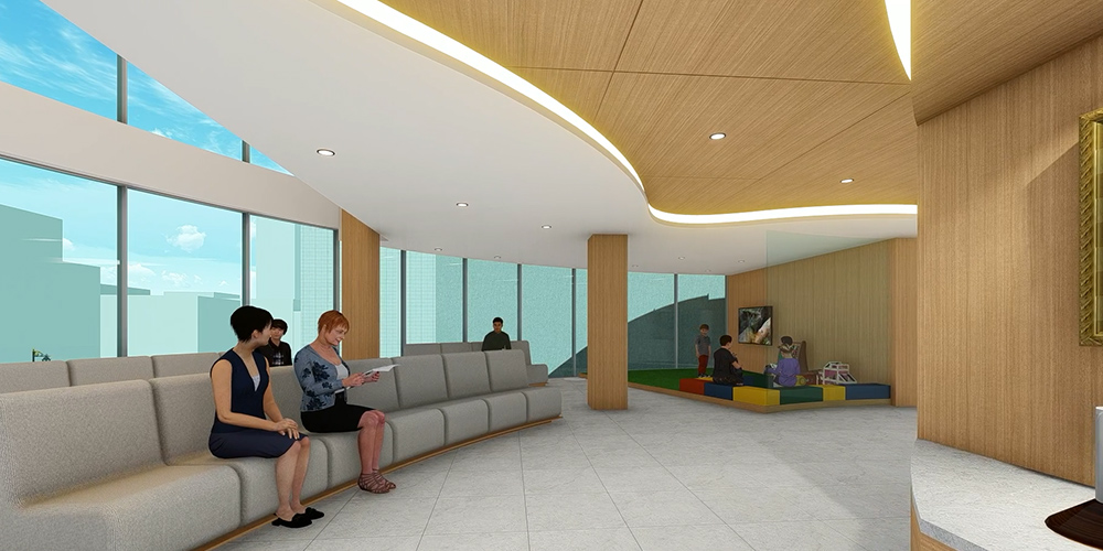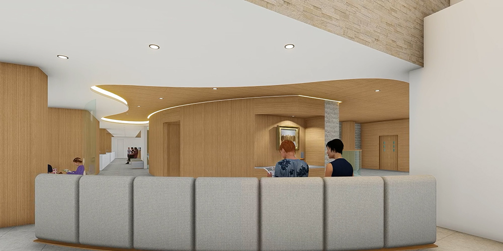 院内にはバリアフリー設計を施しており、段差がないため、ベビーカーや車椅子のかたも安心してご来院いただけます。また、お車でお越しのかたのために、敷地内に20台以上駐車できる大型駐車場を併設しております。エレベーターも設置しており、ご家族皆さまが安心して通える環境を整えております。
